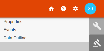 The hammer symbol opens the property panel. It can be used to the get data, update or set actions to the display component. Different sections are visible depending on what object is selected.