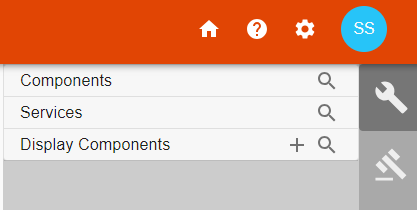 The wrench symbol opens the Toolbox Panel containing Components, Services and Display Components.
