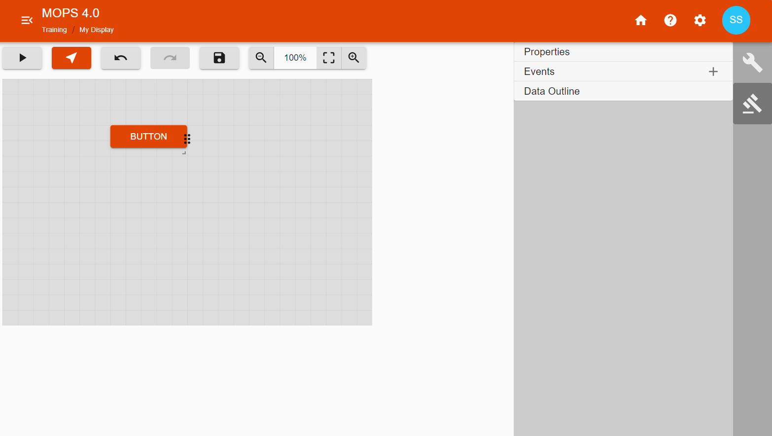 Adjust the zoom level of the design surface by using the zoom buttons on the top of the design surface. By using the square-shaped button the design surface is adjusted to fill the whole surface.