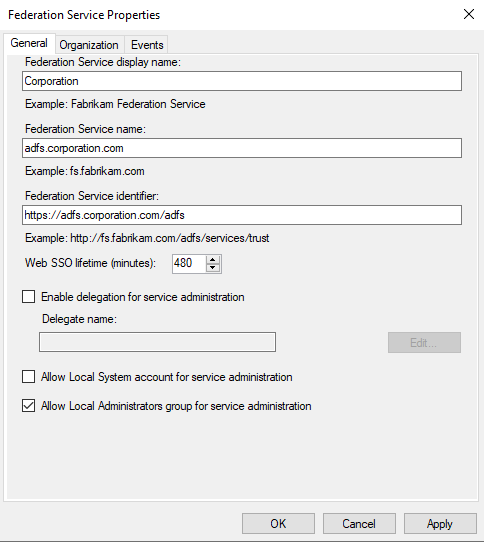 AD FS, in the menu to the left, right-click onAD FSand selectEdit Federation Service Properties... - Make sure the field