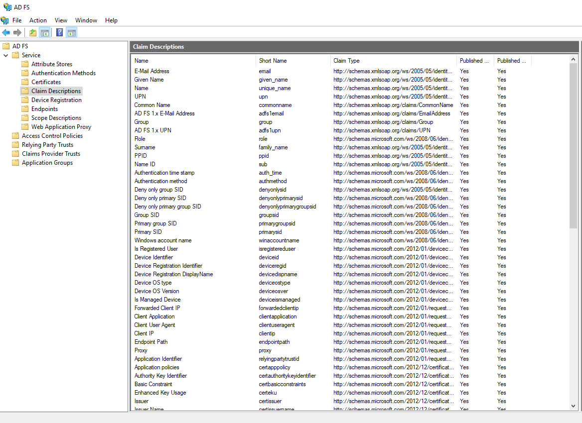 AD FS, expandServicesand selectClaim Descriptions.