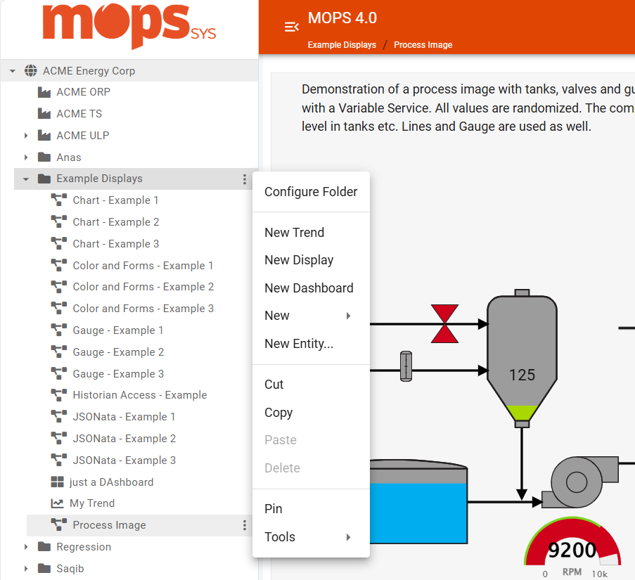 The directory is a hierarchy of items with related information. As an end user you will typically use the directory to find and open displays, dashboards, trends and other items that are available in the system.