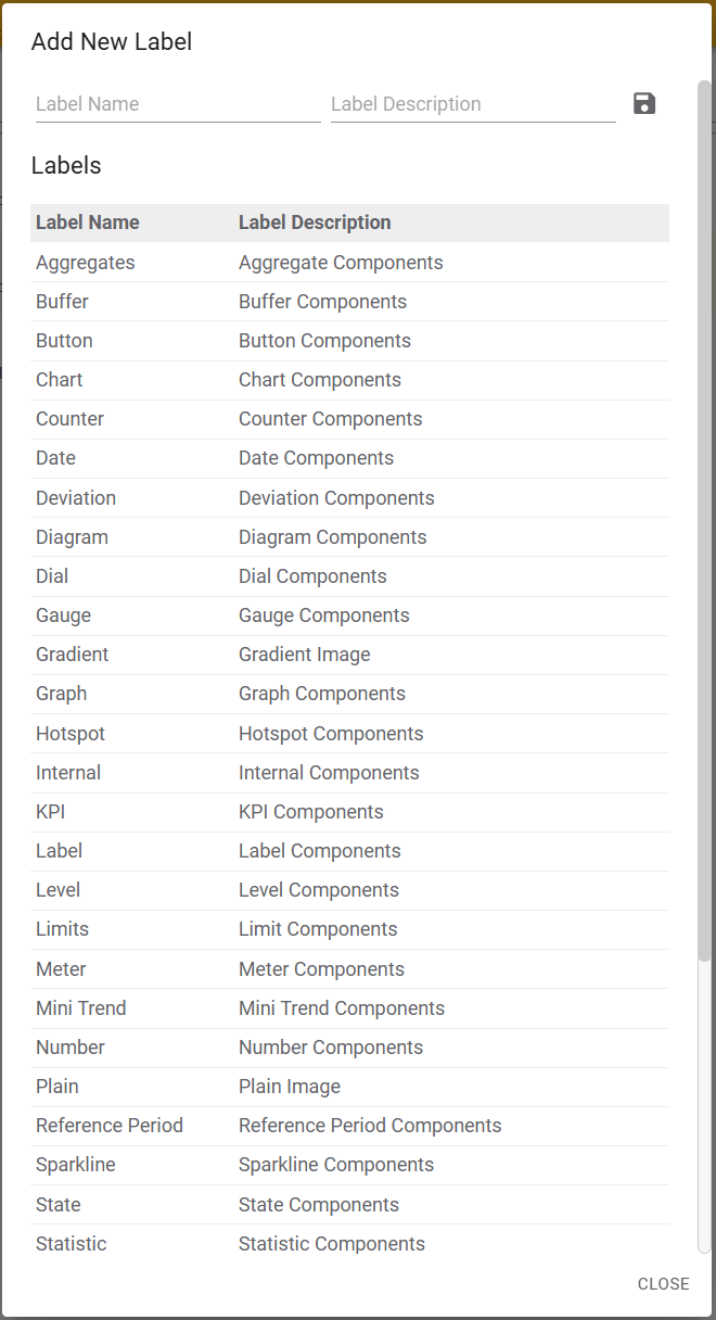 It is possible to assign labels to components in the Designer. This allows you to categorize components and filter them based on labels. When you assign a label to a component, from the Designer, it will be displayed in the Labels field of the component in the entity list as well.