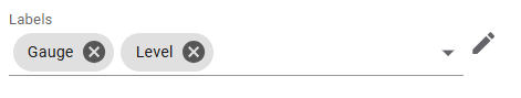 To manage the list of available labels, you can use the Labels property in the Entity List. The pen icon to the right of the Labels field opens the Labels modal, where you can add, edit, or delete labels.